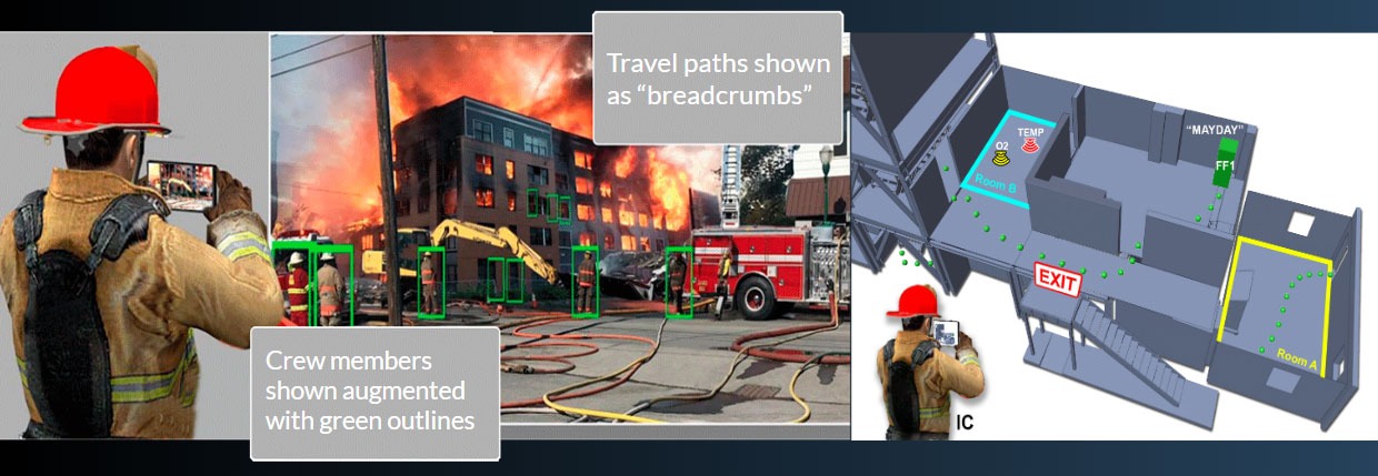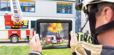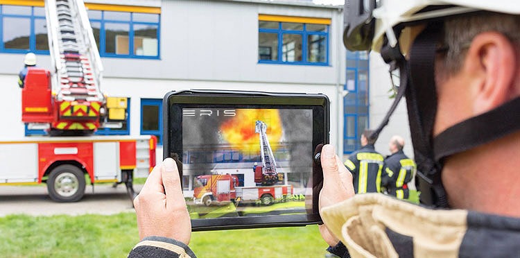 The capabilities of ERIS to overlay virtual content and 3D models precisely on the real world make it a valuable tool for firefighter training. With AR, fire and smoke propagation simulations can be carried out in realistic settings, free from the usual constraints of VR headsets.